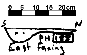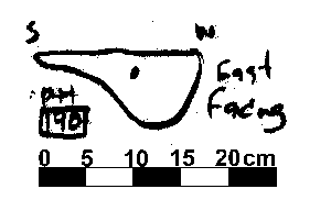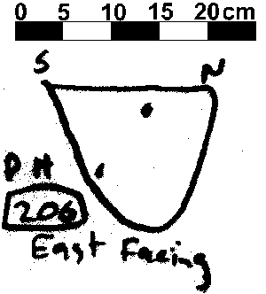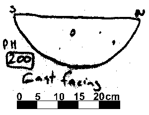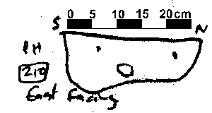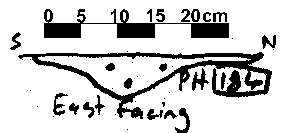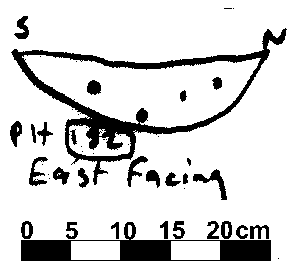 U-SHAPED NO FINDS. DAUB BUT NO CHARCOAL FLECKS. CHALK INC 3%. NO POST PACKING EVIDENT BUT POST PIPE PROBABLY IN NORTEHRN END.
