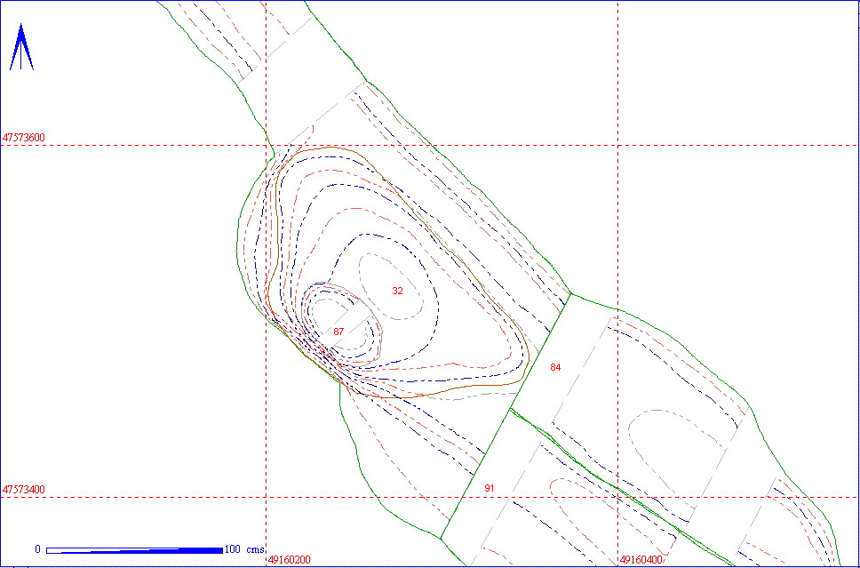 012AE00031 PIT FILL OVATE 188 107 25 FLAT BASED U FINAL FILL OF PIT CONTAINED ANIMAL BONE POTTERY IRON KNIFE BRONZE TWEEZERS AND LOOP. CUT BY DITCH 13/36/14 AND LAY ABOVE PIT FILL 85 AND POST HOLE 86.