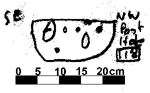 U-SHAPED | NO CHARCOAL FLECKING. DAUB VISIBLE THROUGHOUT. IRON OBJECT (SPIKE OR NAIL) IN SECTION. | |