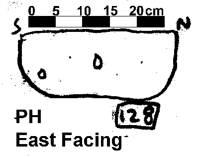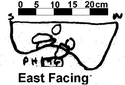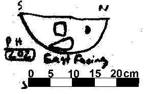 U-SHAPED | NO FINDS. DAUB BUT NO CHARCOAL FLECKS. CHALK INC 20% 0.5 2.5 CM IN DIAMETER. POST PACKING INDICATES POST PIPE CENTRALLY PLACED. |