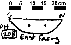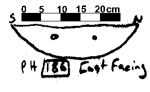 V-SHAPED | NO FINDS. NO DAUB OR CHARCOAL FLECKING. NO PACKING EVIDENT. NO POST PIPE VISIBLE THOUGH CUT IS DEEPER TO THE WEST. |