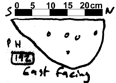 U-SHAPED | NO FINDS. NO DAUB OR CHARCOAL FLECKS. CHALK INC 3% 0.5 1 CM IN DIAMETER. PACKING OF SMALL STONES INDICATES POST PIPE IS CENTRALLY PLACED. |