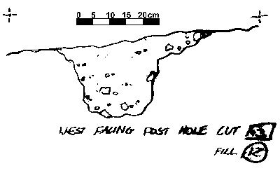 013AB00012 POST HOLE FILL ROUND 47 48 24 U-SHAPED CONTAINED ONLY ONE ANIMAL BONE FIND. CHALK INC 5% 0.5-2 CM IN DIAMETER.