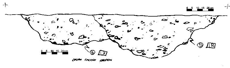 013AB00021 DITCH CUT LINEAR 345 70 32 V-SHAPED MATERIAL REMOVED BY MACHINE TO OBTAIN SECTION AND PROFILE OF DITCH.